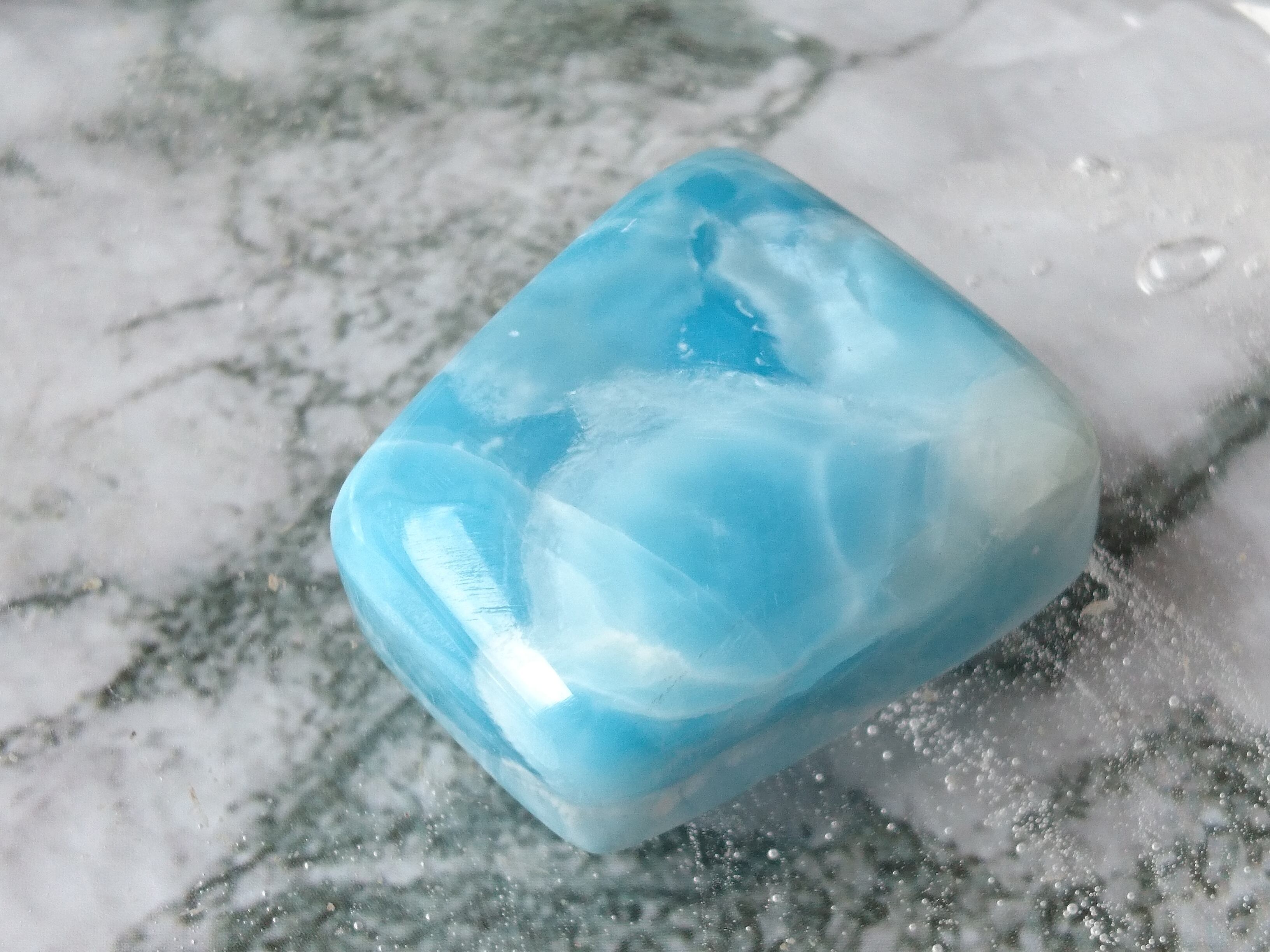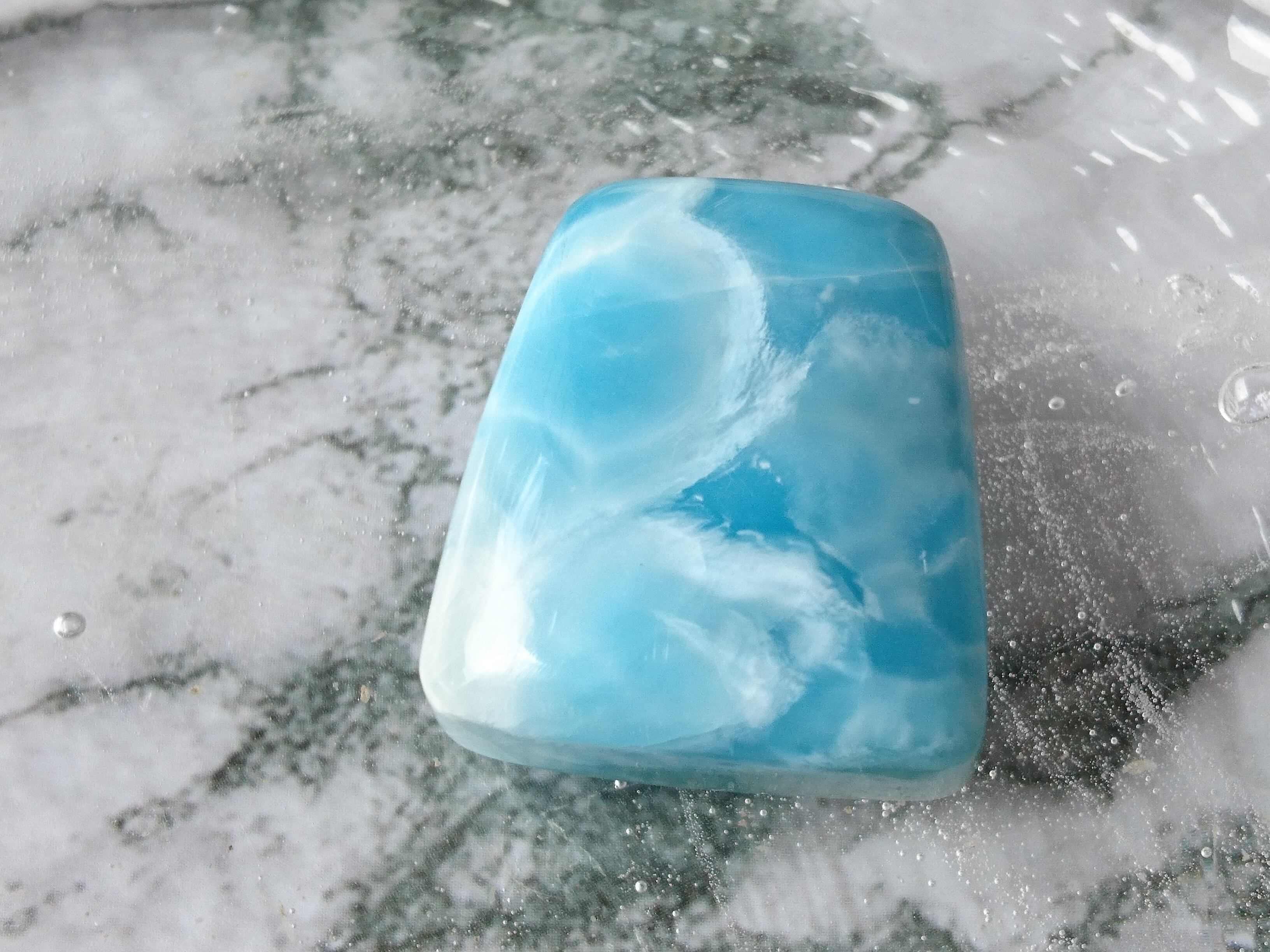 透明感のあるブルーの波模様のラリマーです✨表側全面に透明感のあるアイスラリマーです✨厚みもありボリューム感あり。