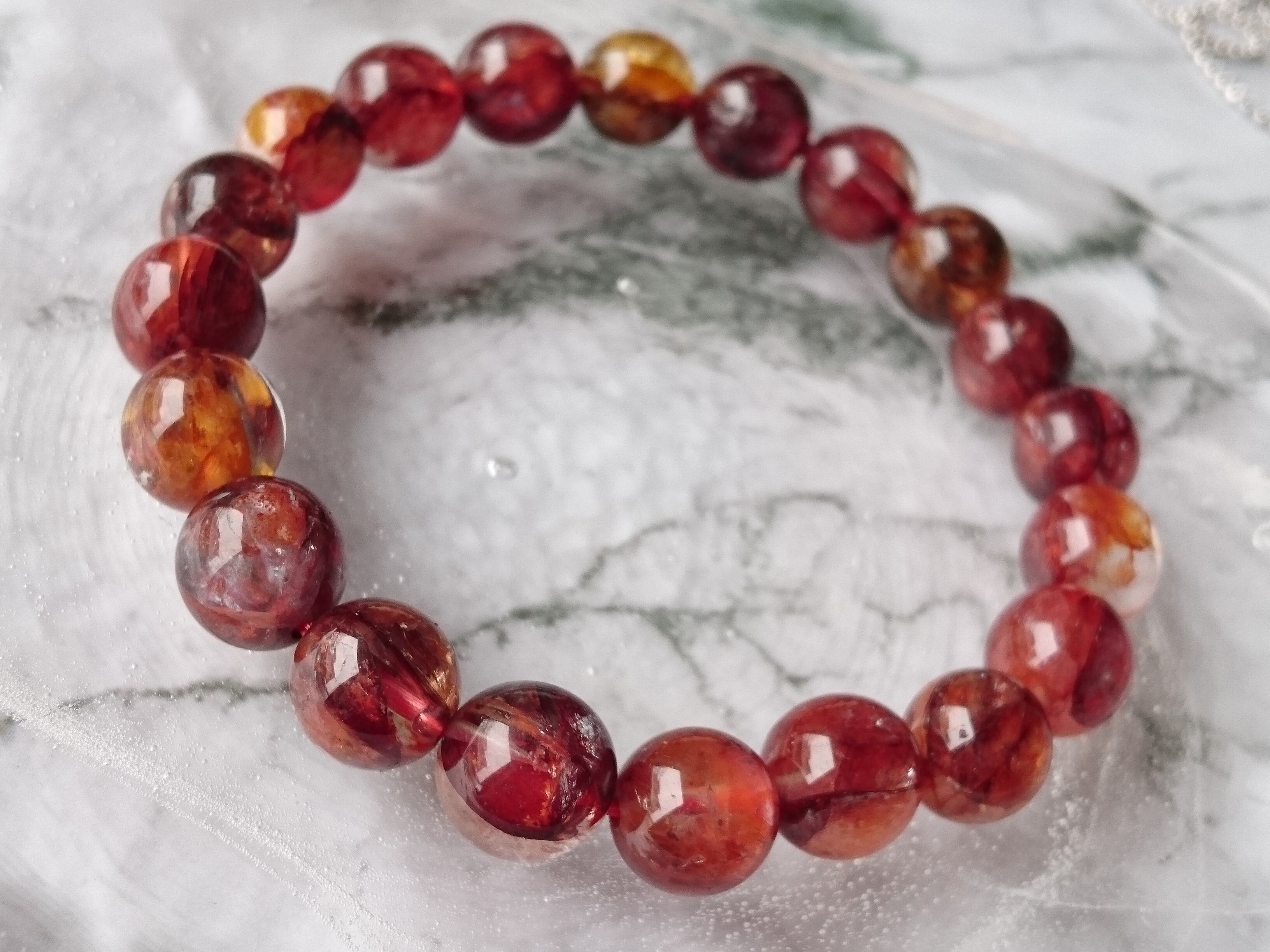 クリアなクォーツにダークレッド、オレンジのライモナイトインクォーツです✨