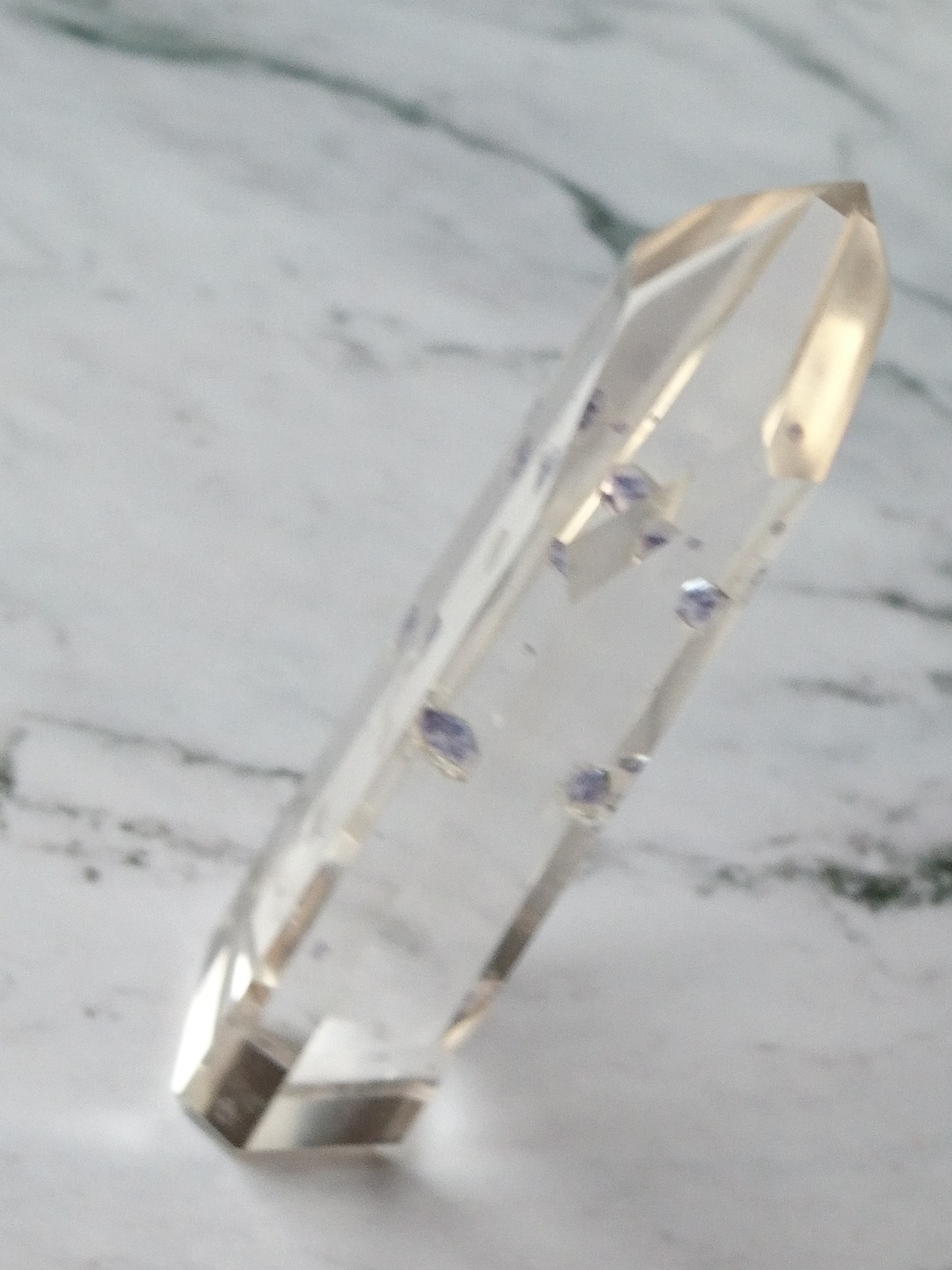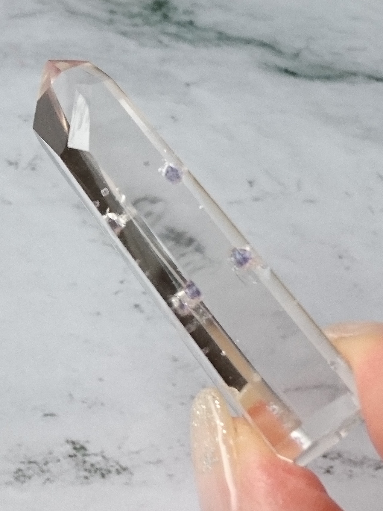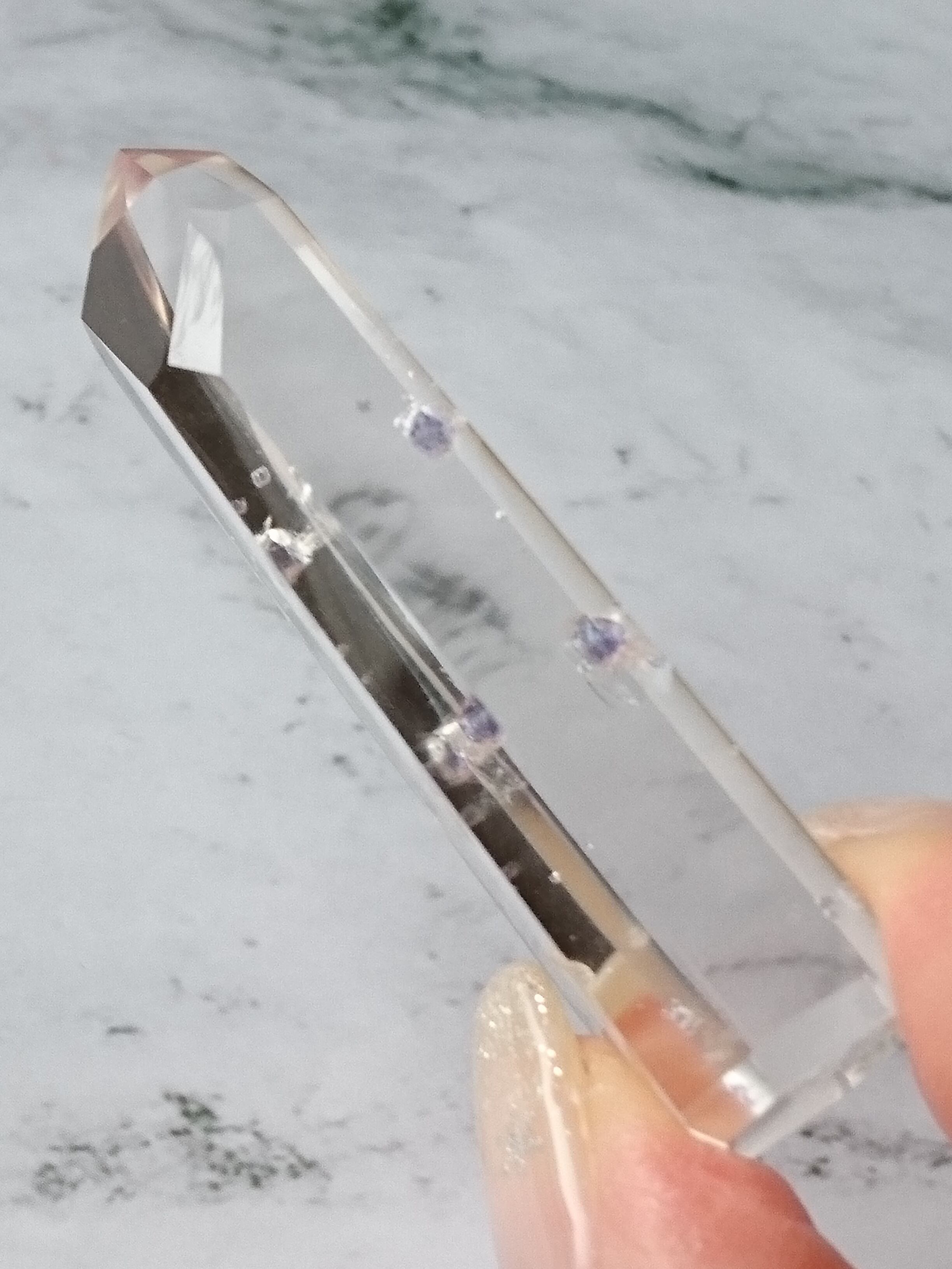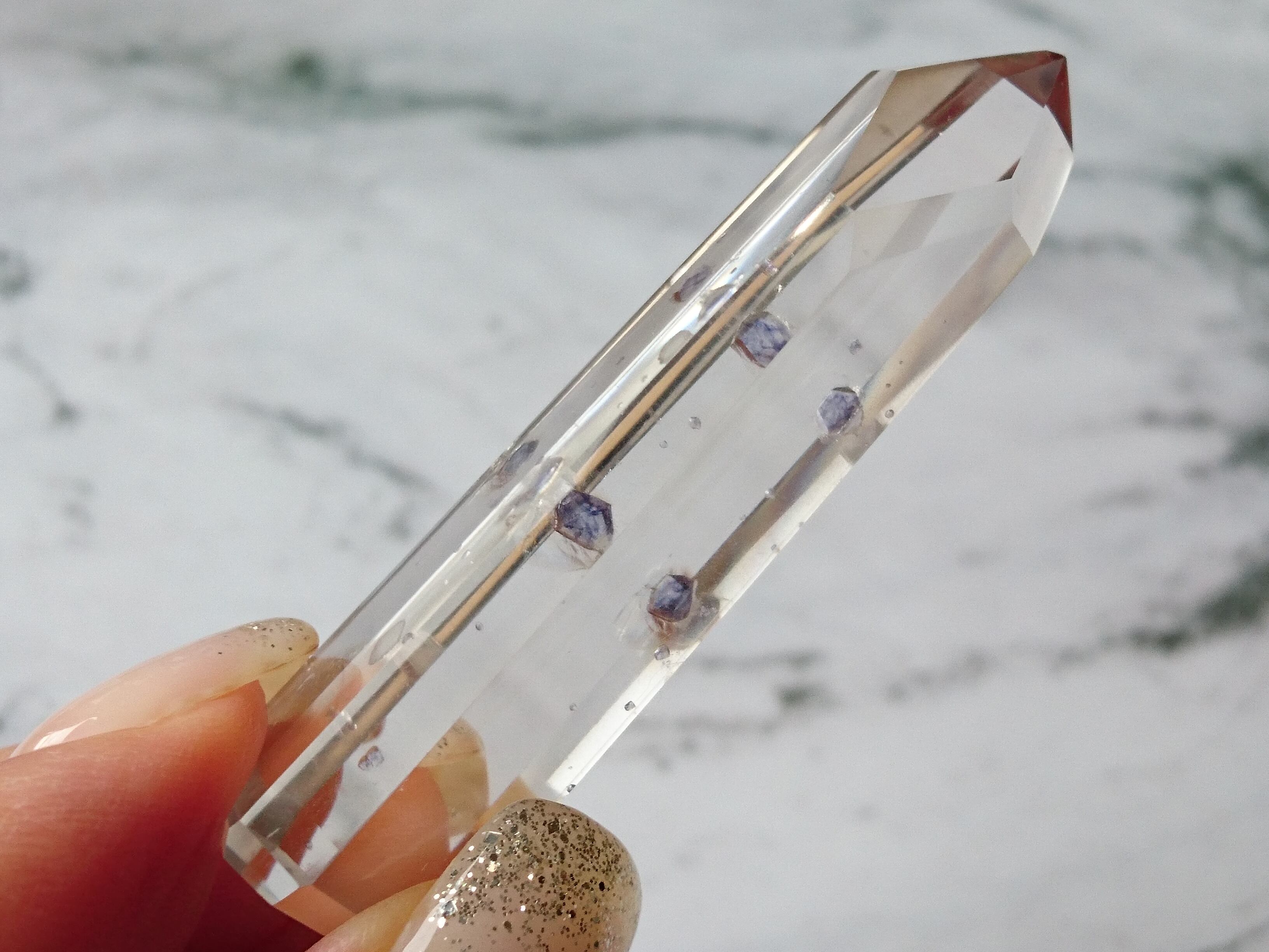 完璧クリアな水晶にブルーのキューブフローライトインです✨