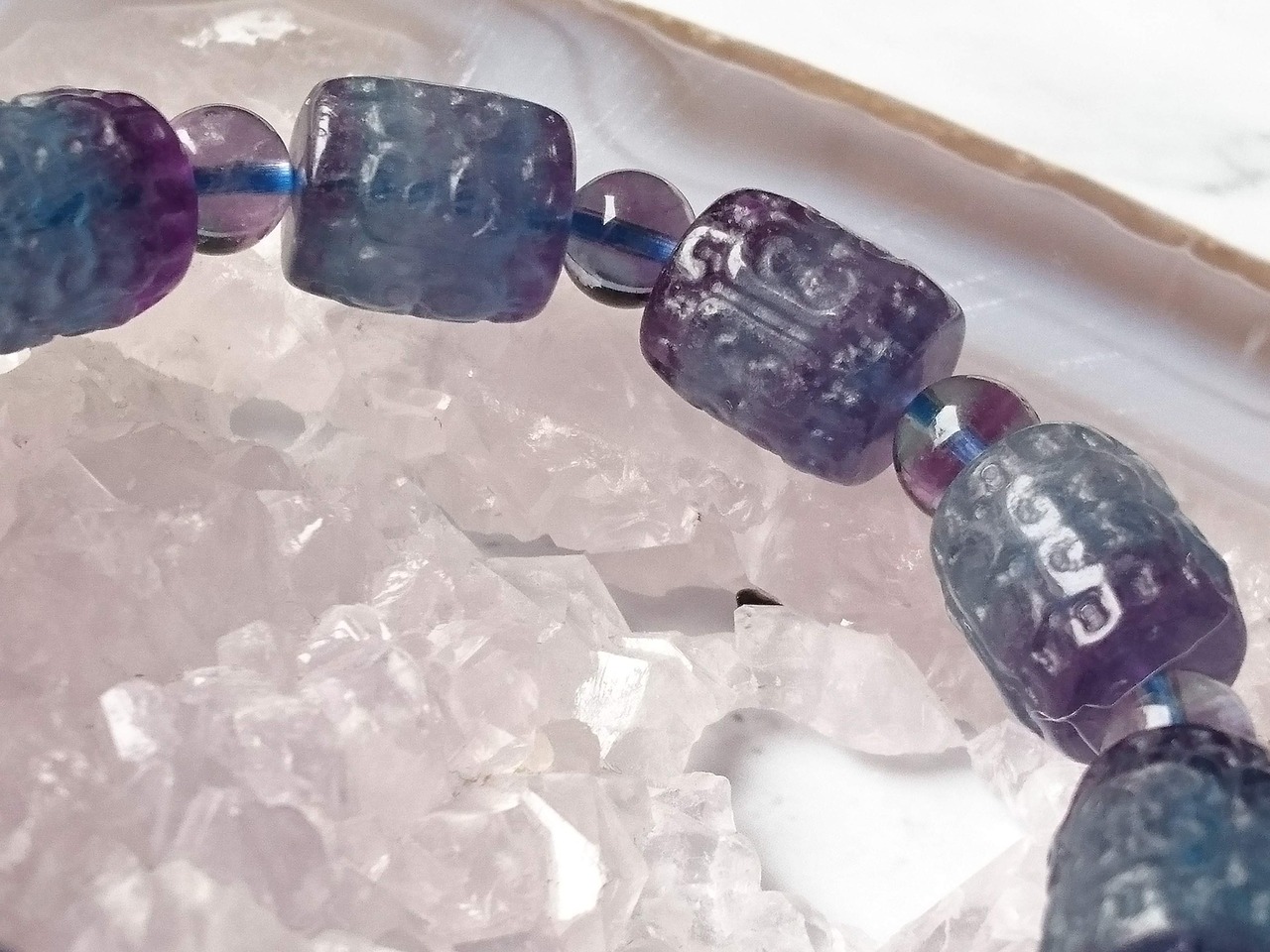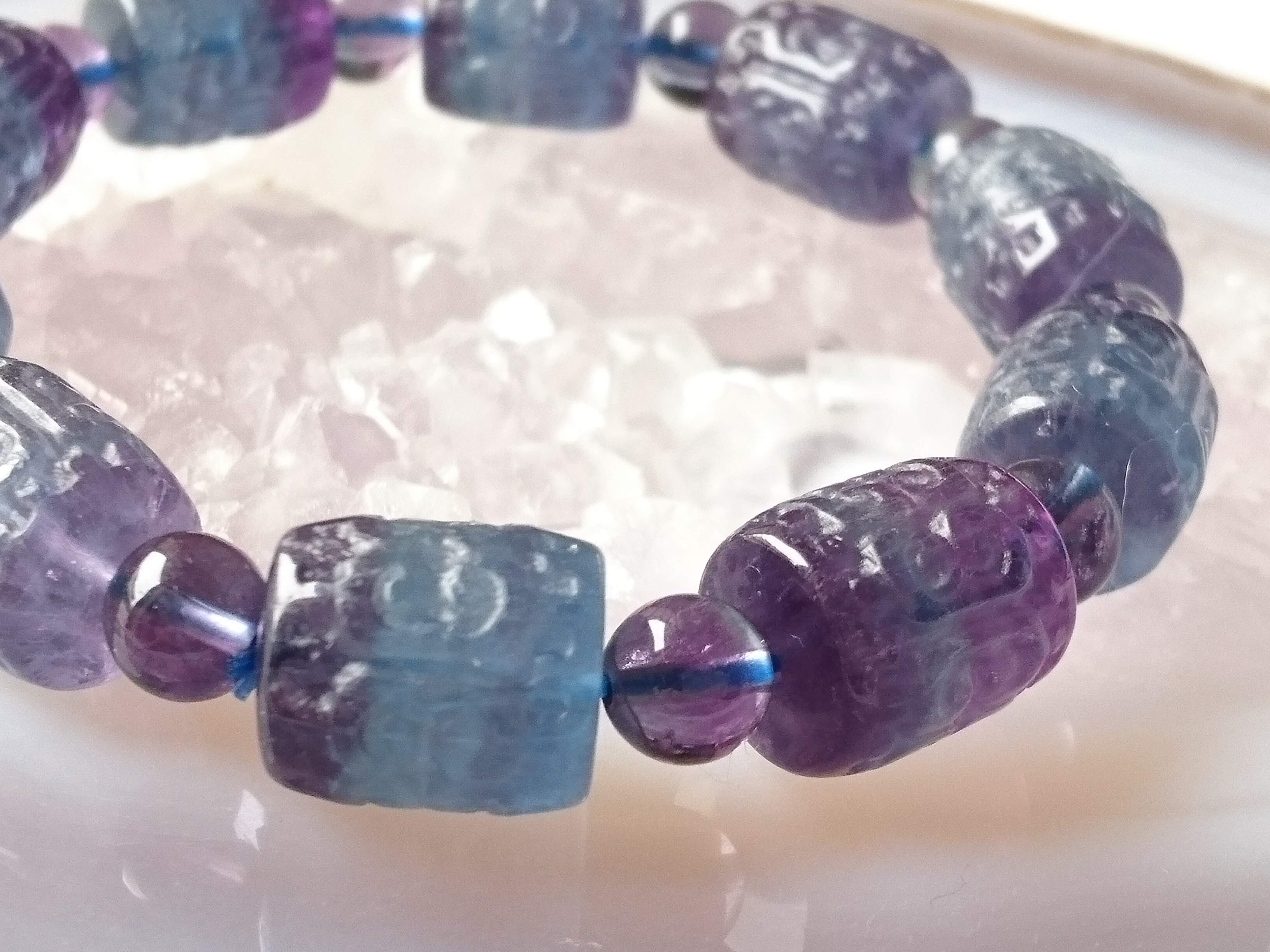 濃いブルー×パープルのファントムフローライトのマニ車彫りです✨