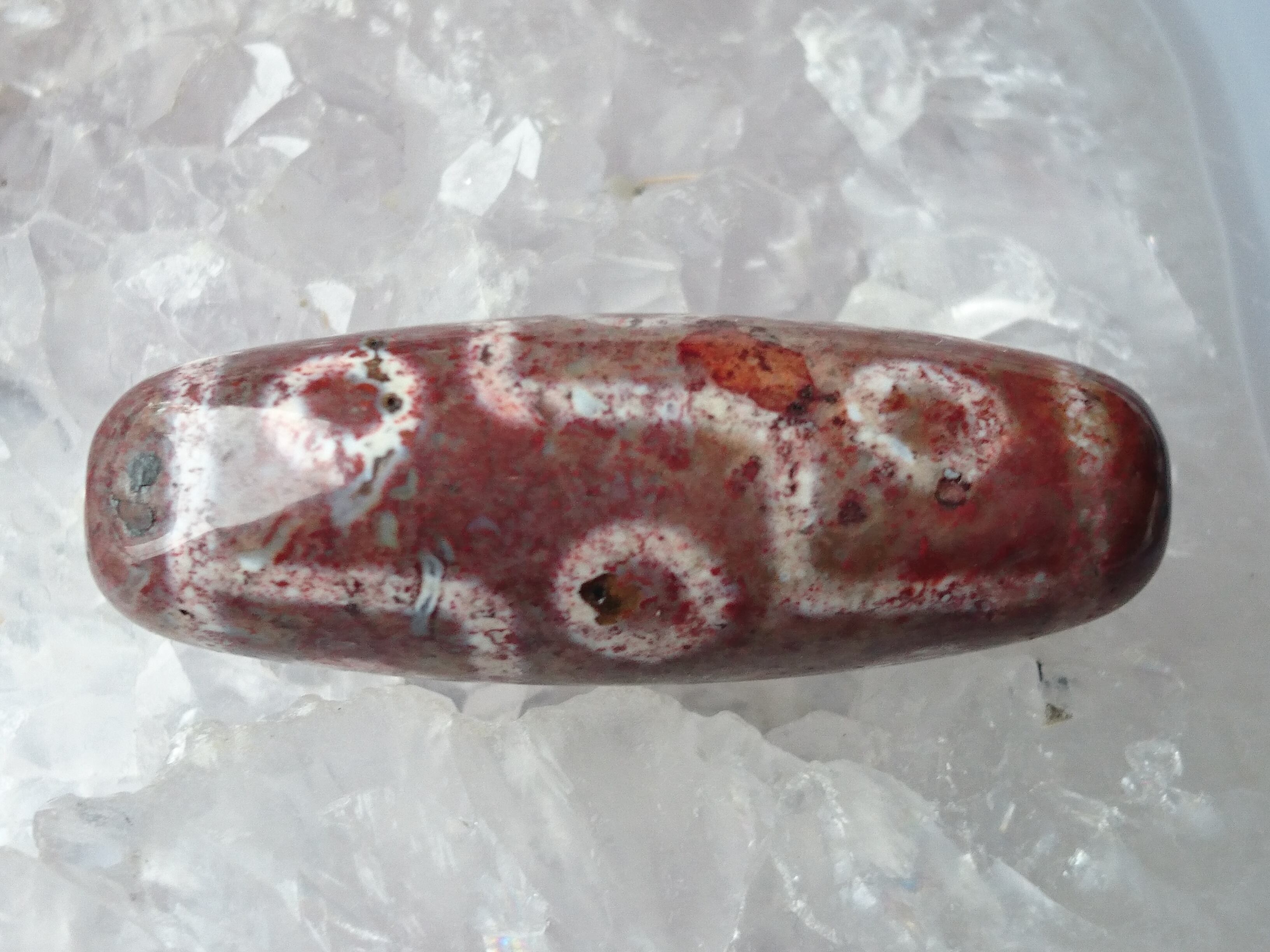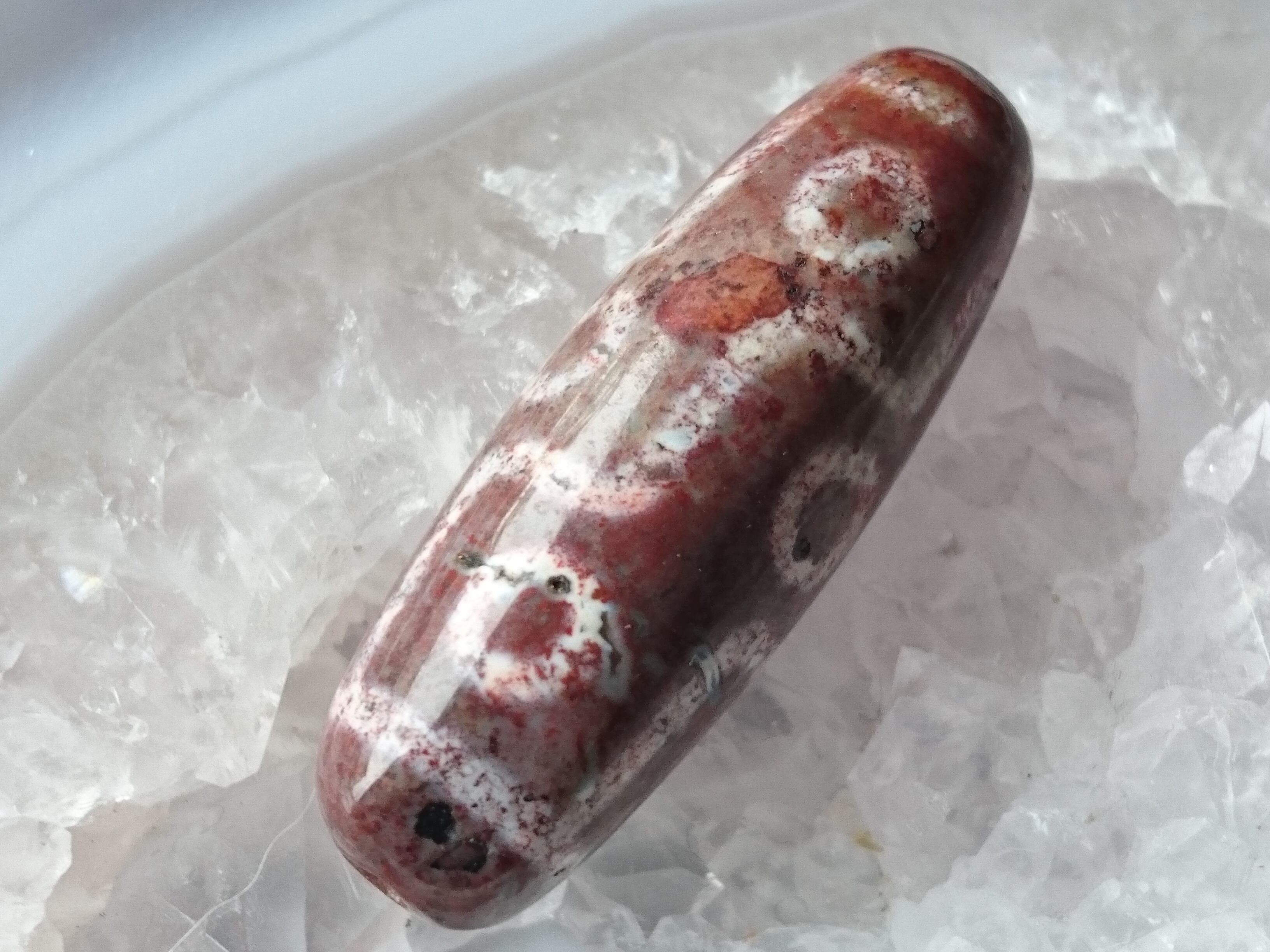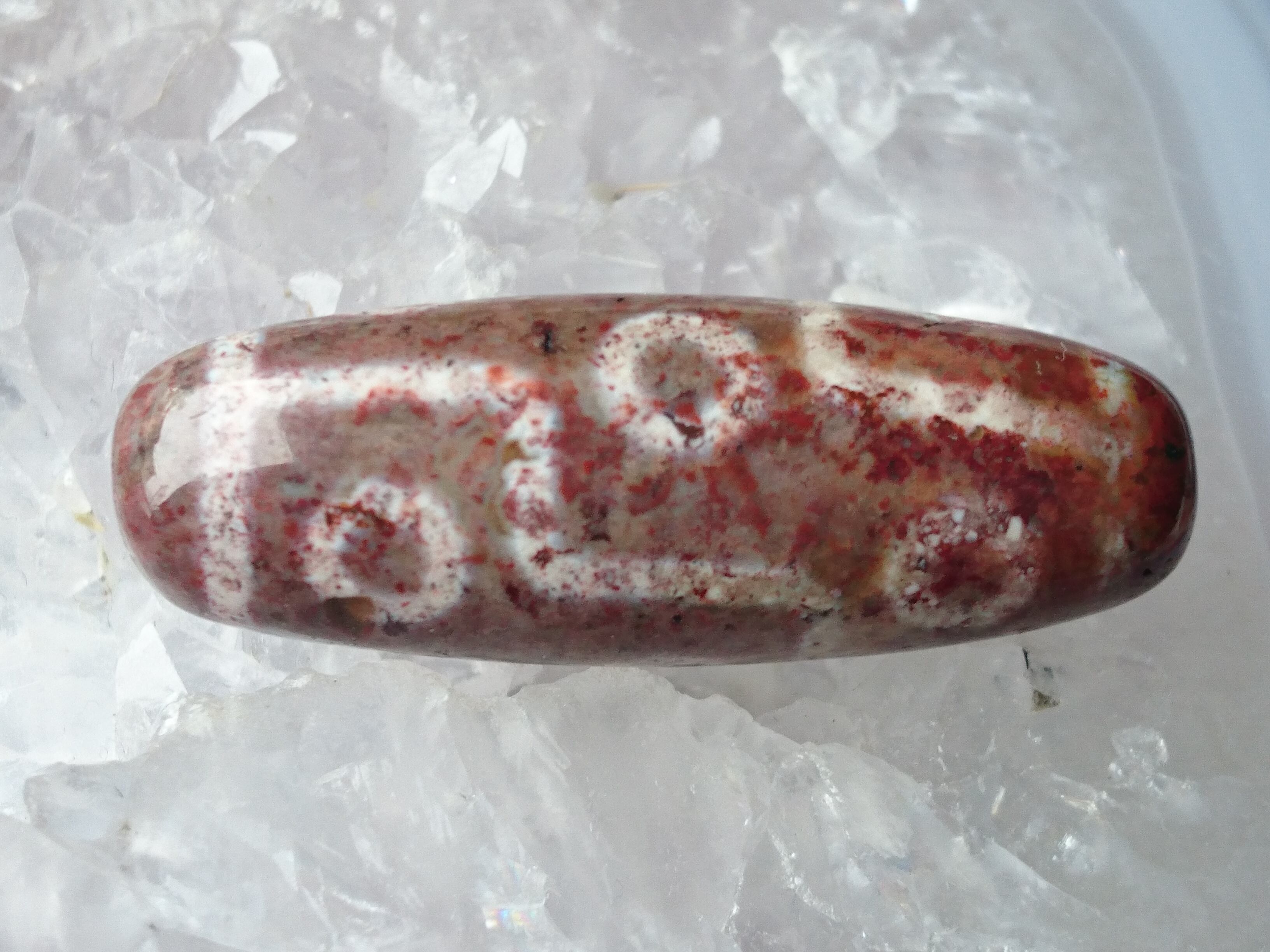 全面に朱砂が入っています✨朱砂とは瑪瑙に入り込んだ朱色の砂で、この赤砂はシナバー(辰砂)になります。
