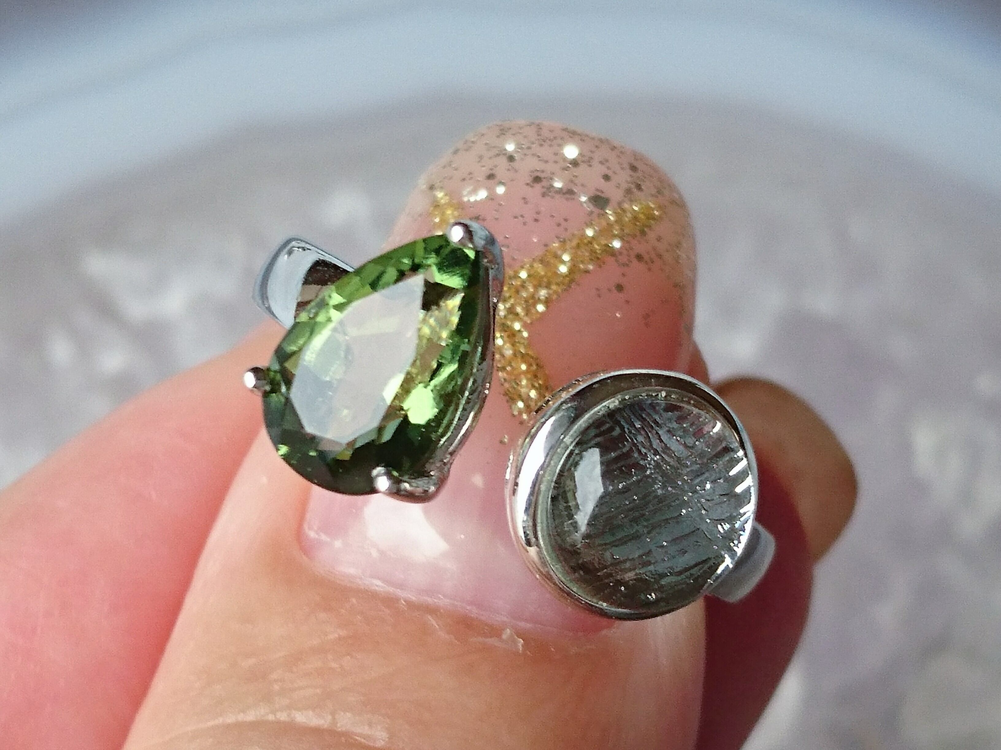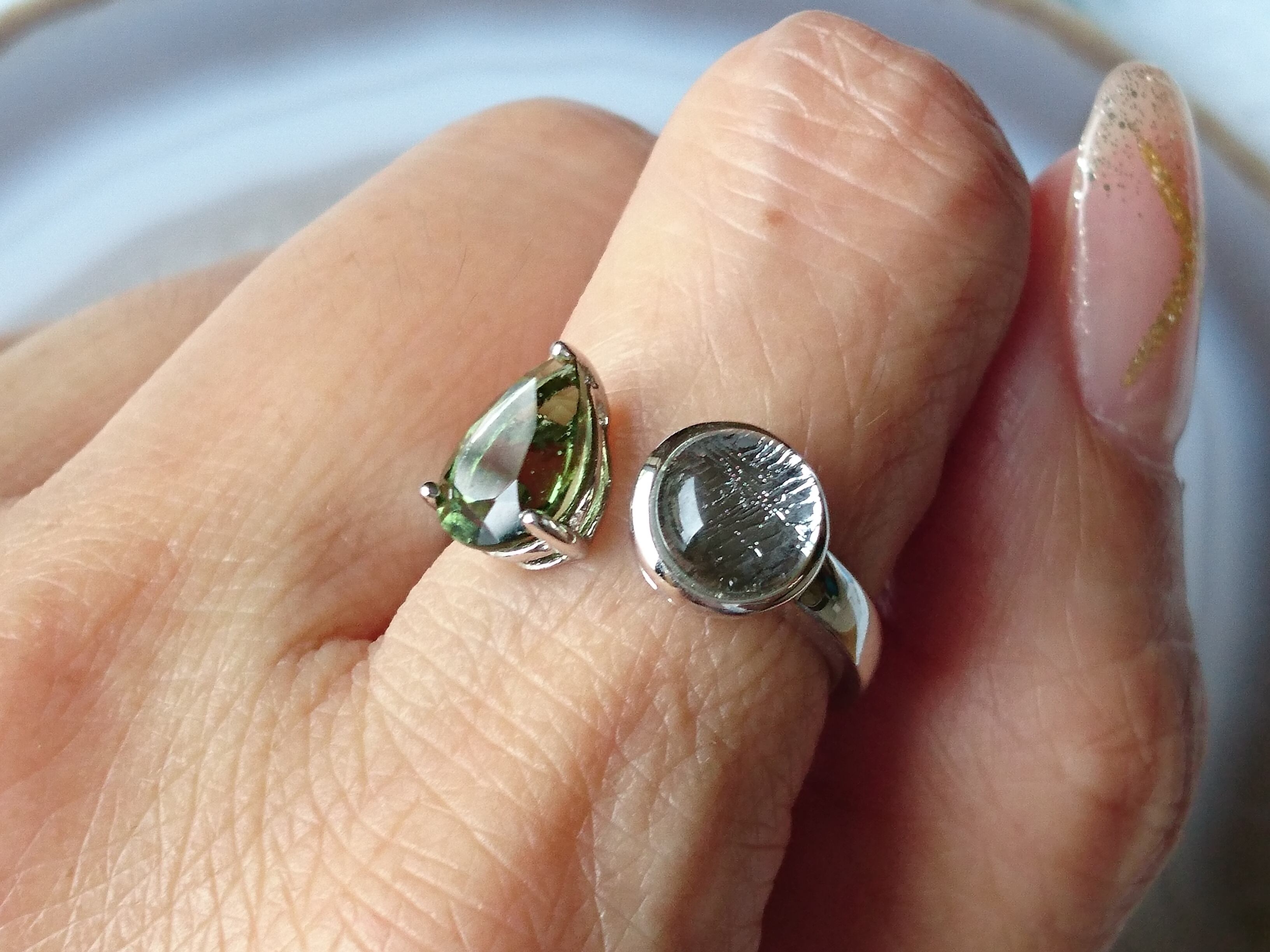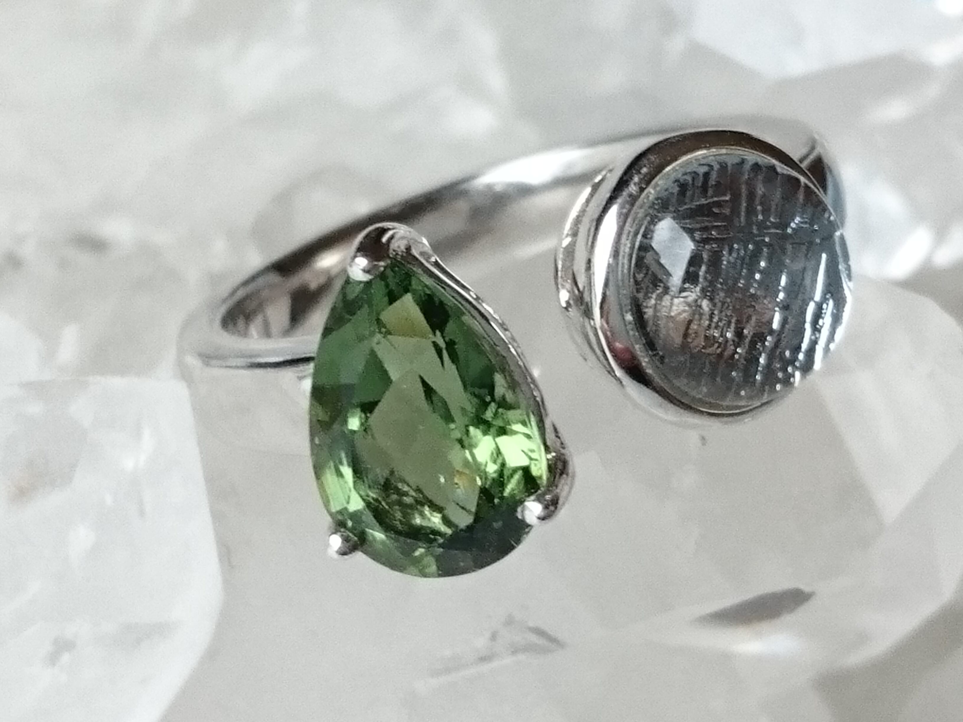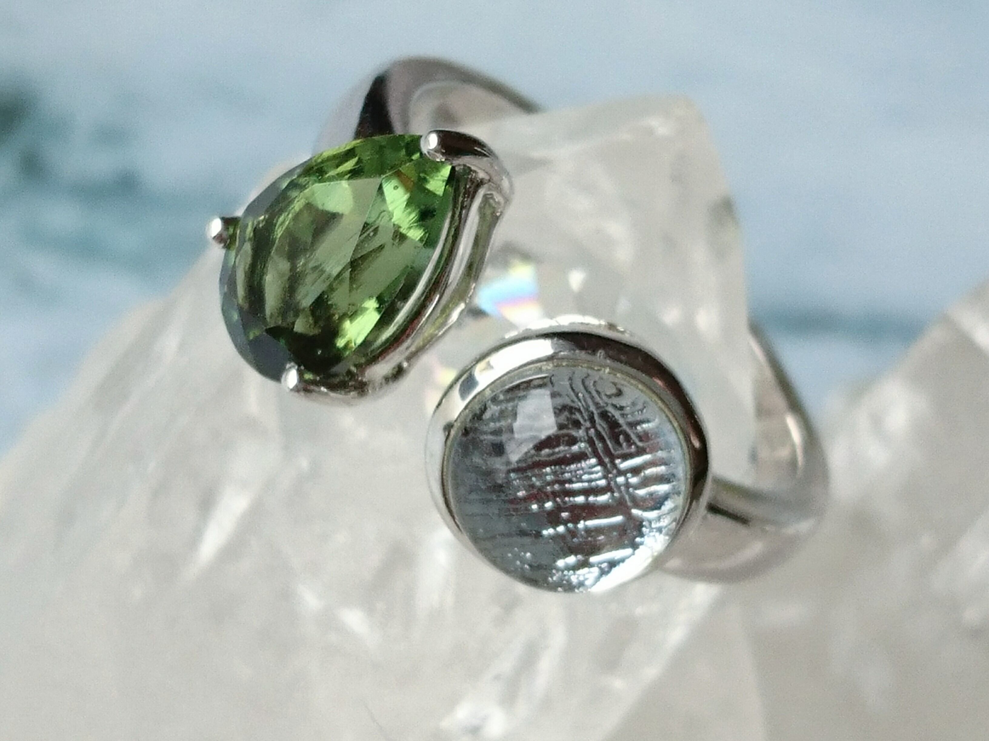 宝石質✨美しいモルダバイトとギベオンのリングです✨