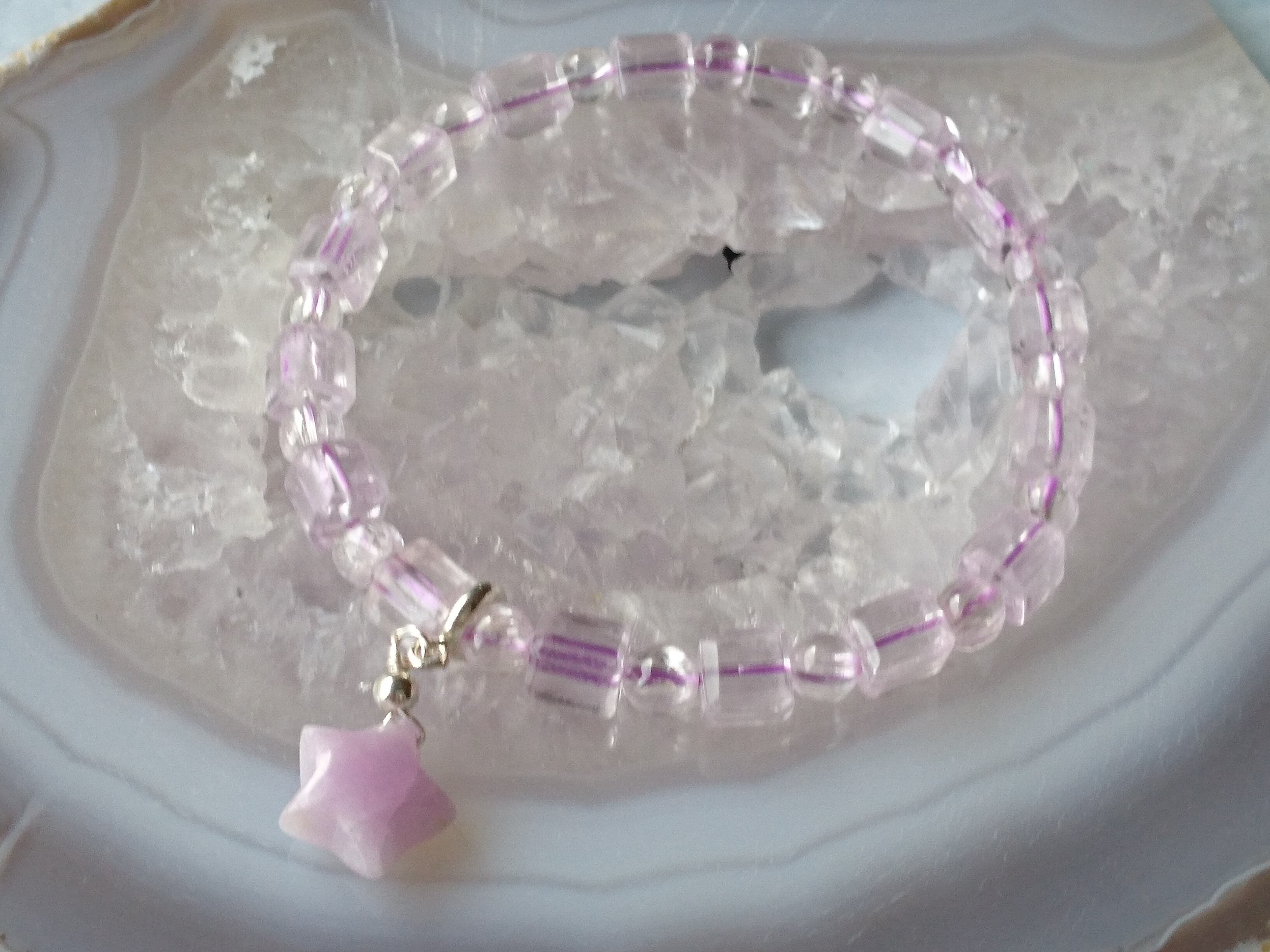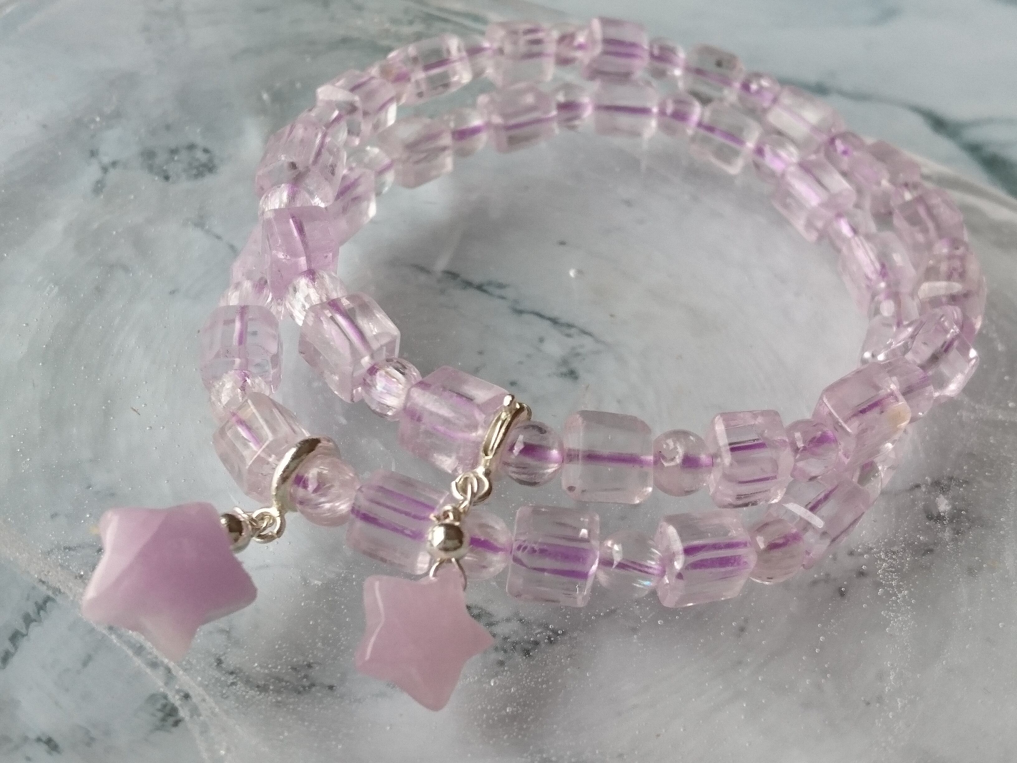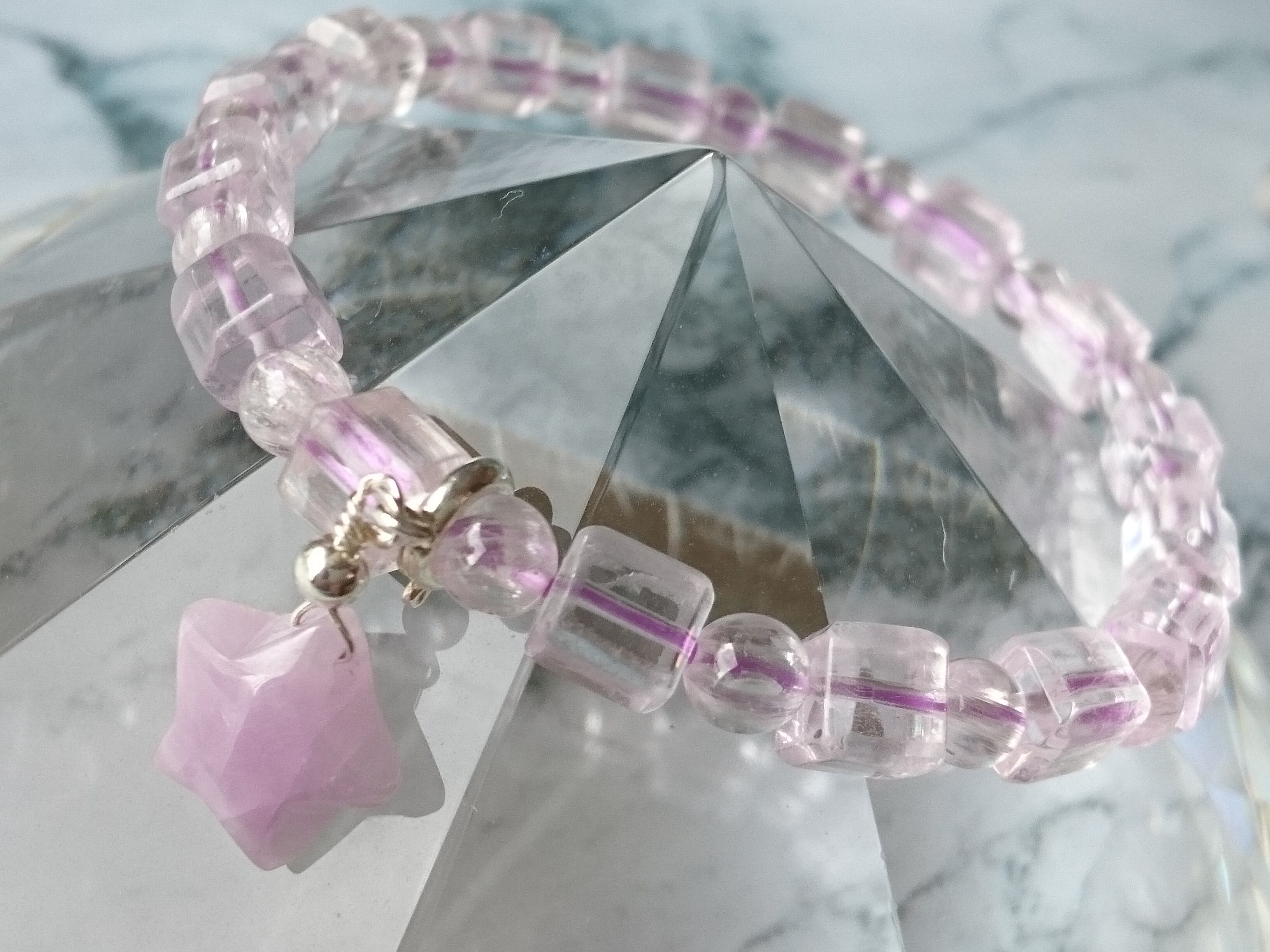 美しいライラックピンクの透明クンツァイトキューブカットにカワイイ星チャーム付き✨チャームは取り外し可