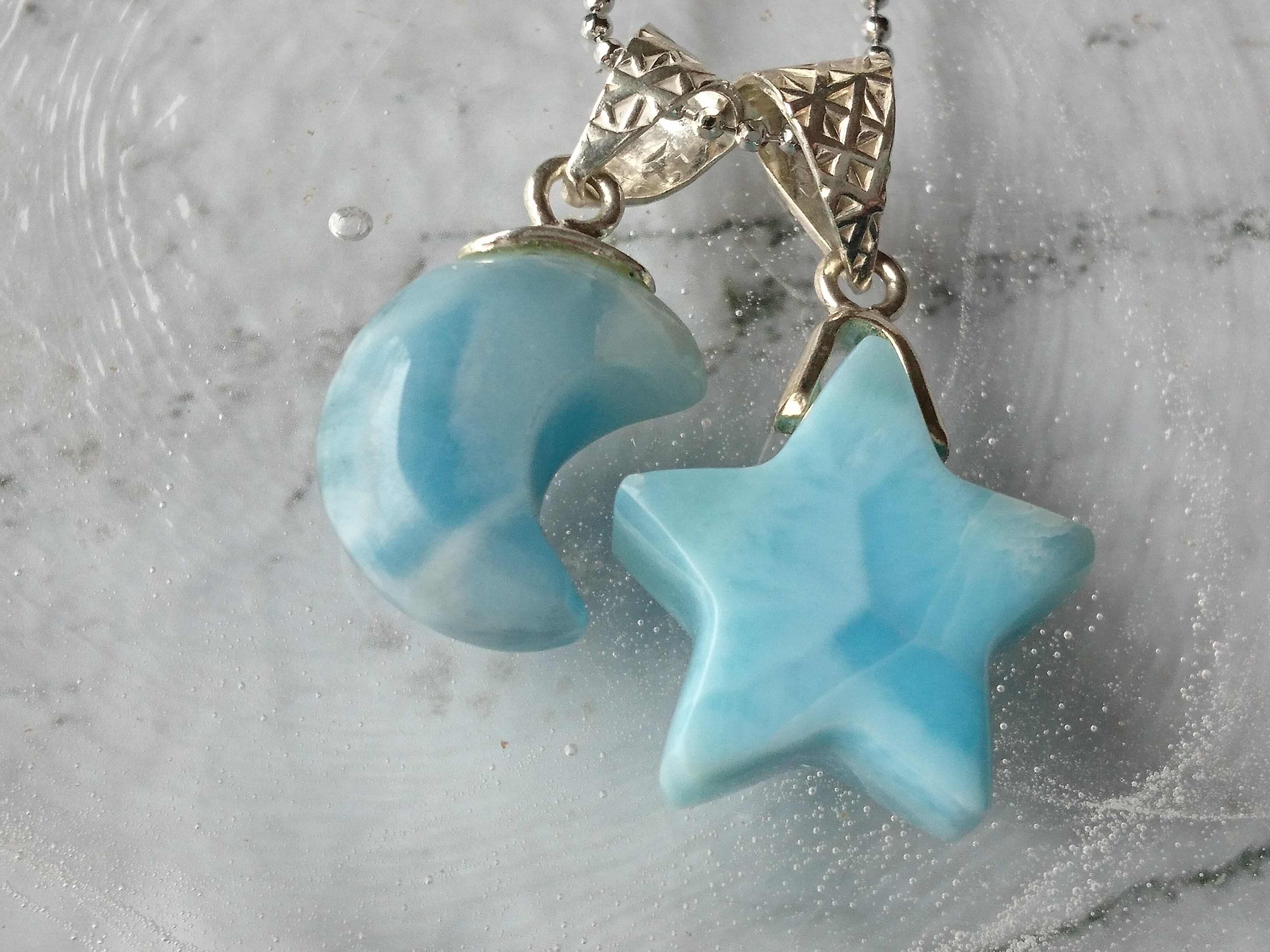 照りの良い透明感のある水色の波模様のラリマーです✨