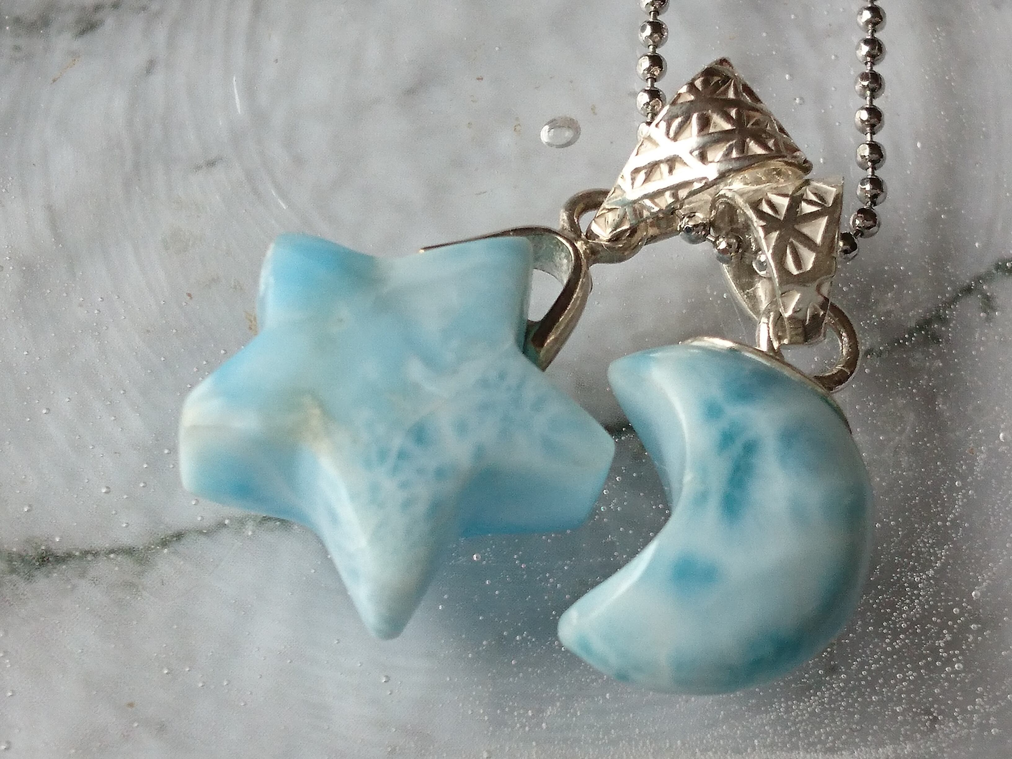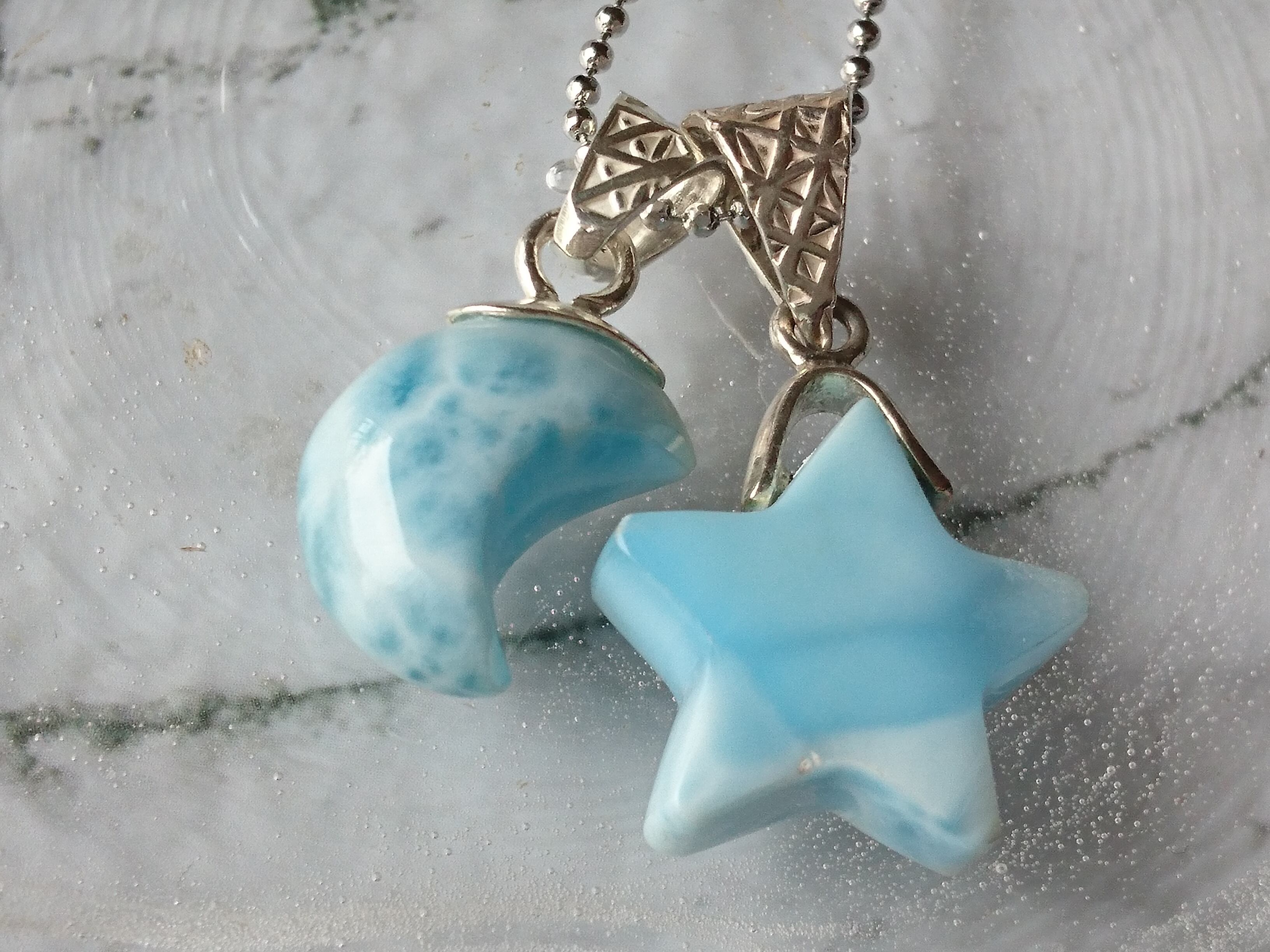 照りの良い透明感のある水色の波模様のラリマーです✨