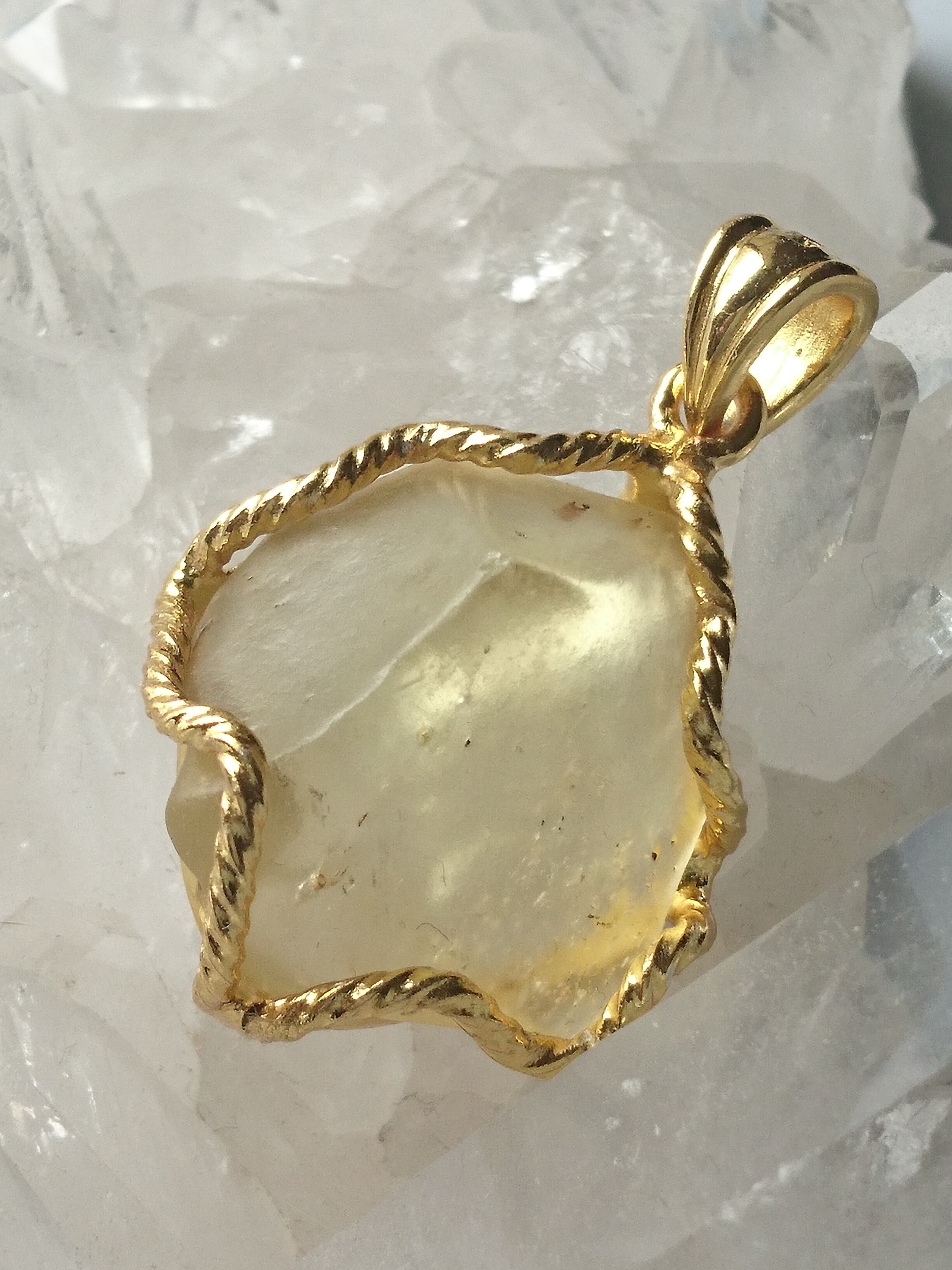 高透明✨山みたいなフォルムの厚みのあるリビアングラス原石ペンダントです✨