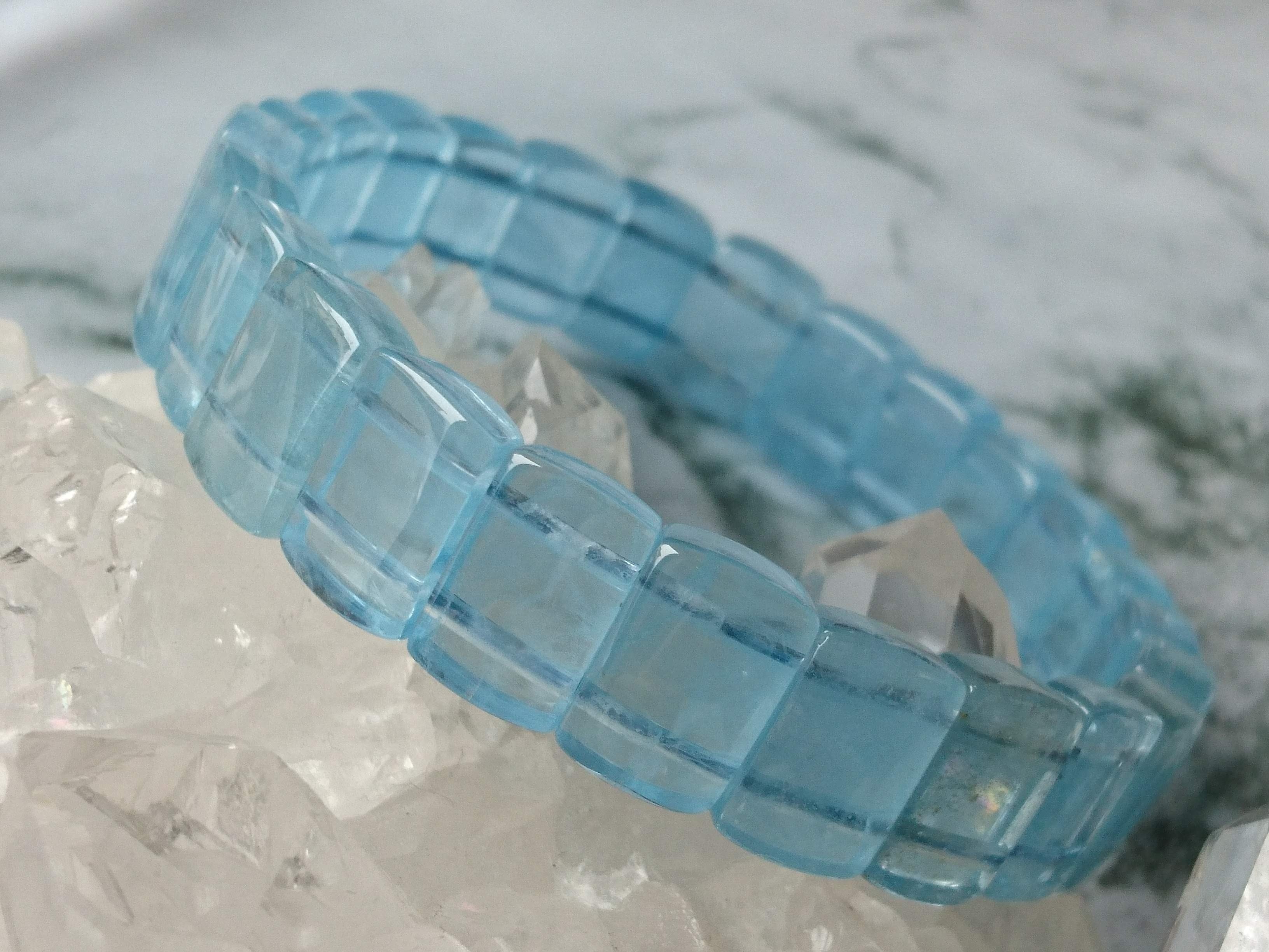 キラキラシラーの美しいブルートパーズ✨キレイな石の並びでつけ心地抜群のバングルです✨