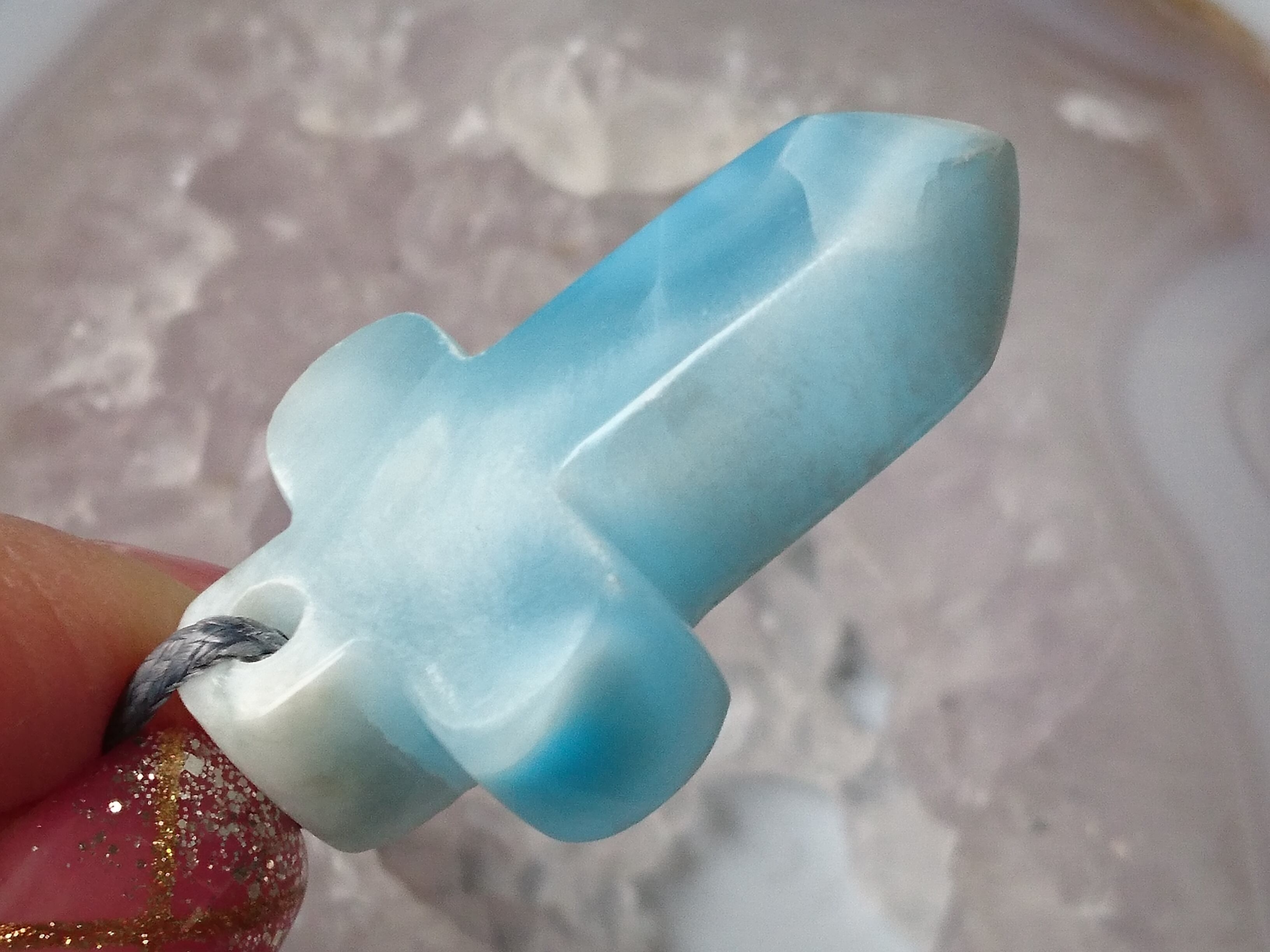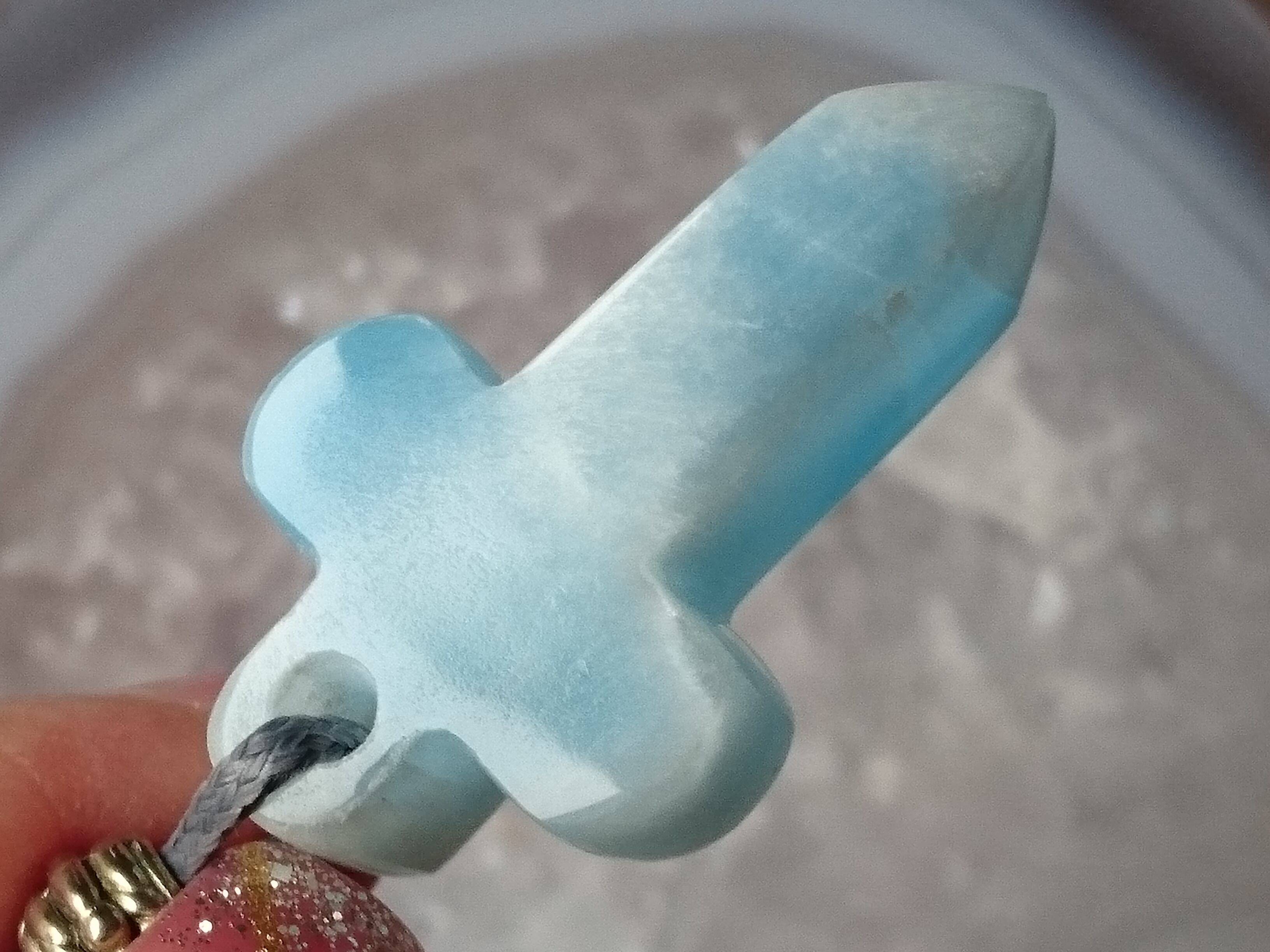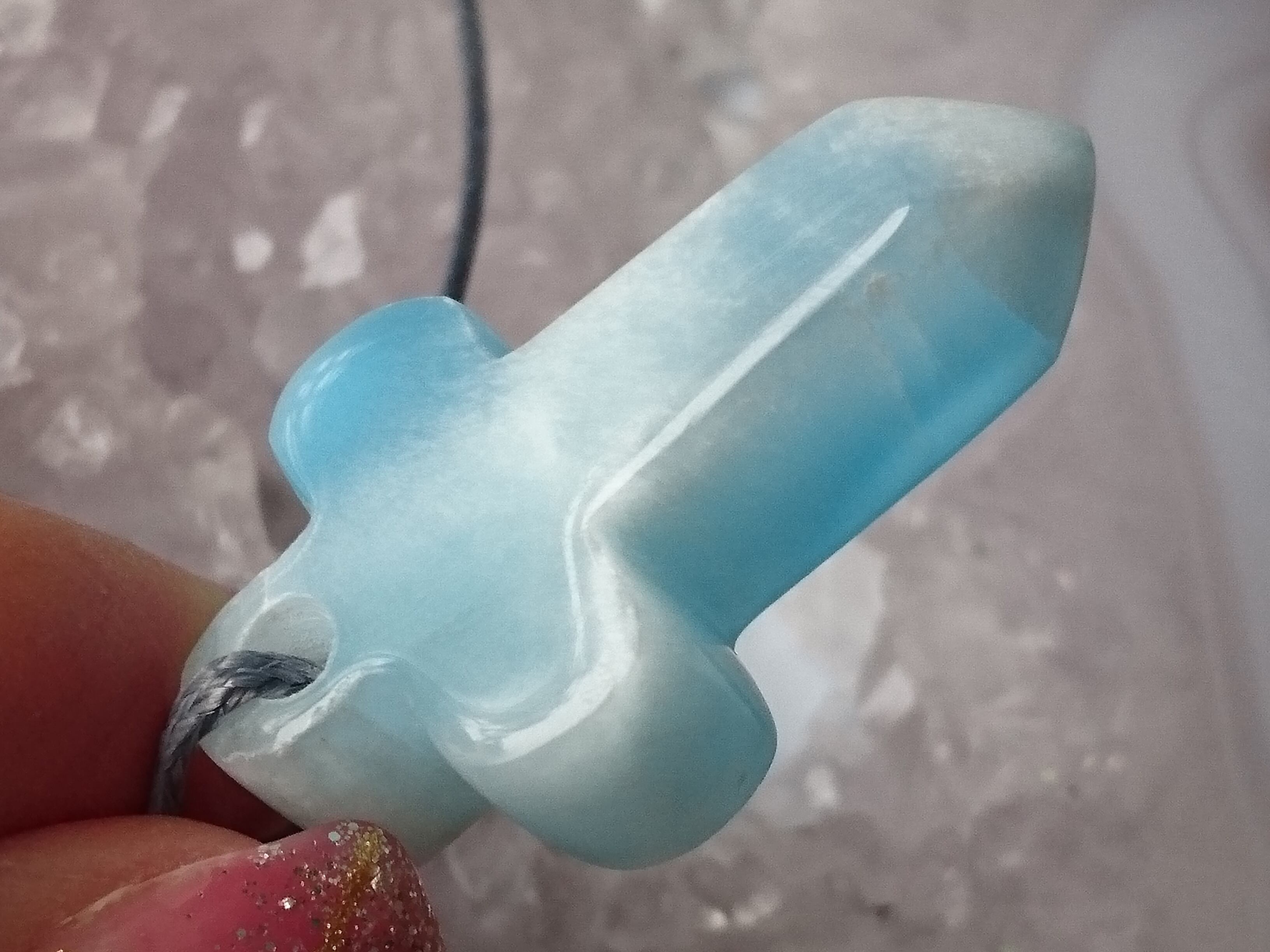 高透明✨濃いブルーと白のシャトヤンシーが美しいアイスラリマー✨全体に透け透けつるピカです✨