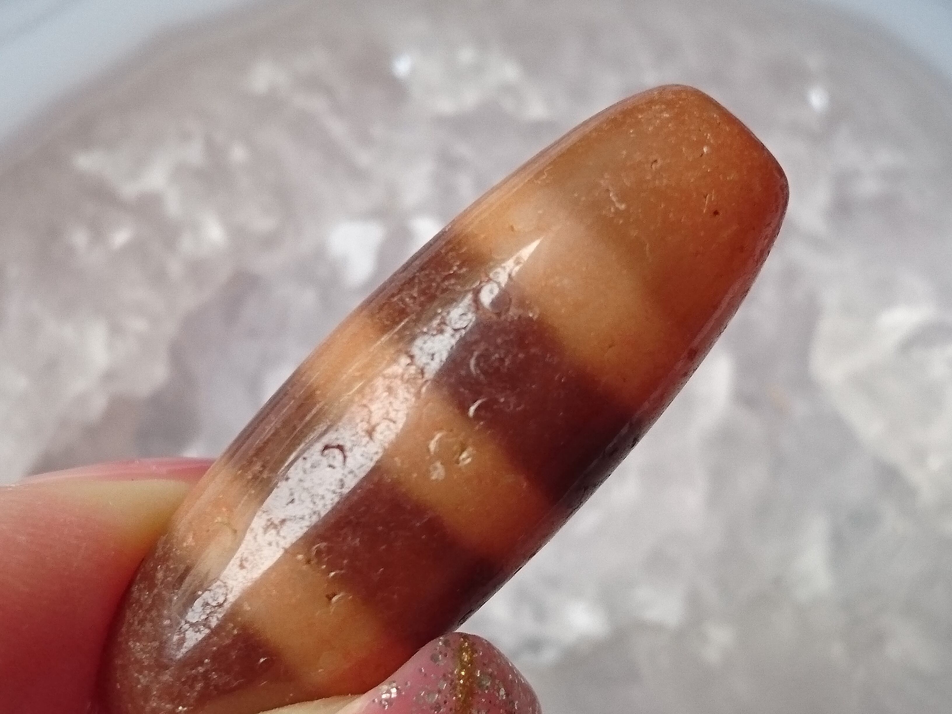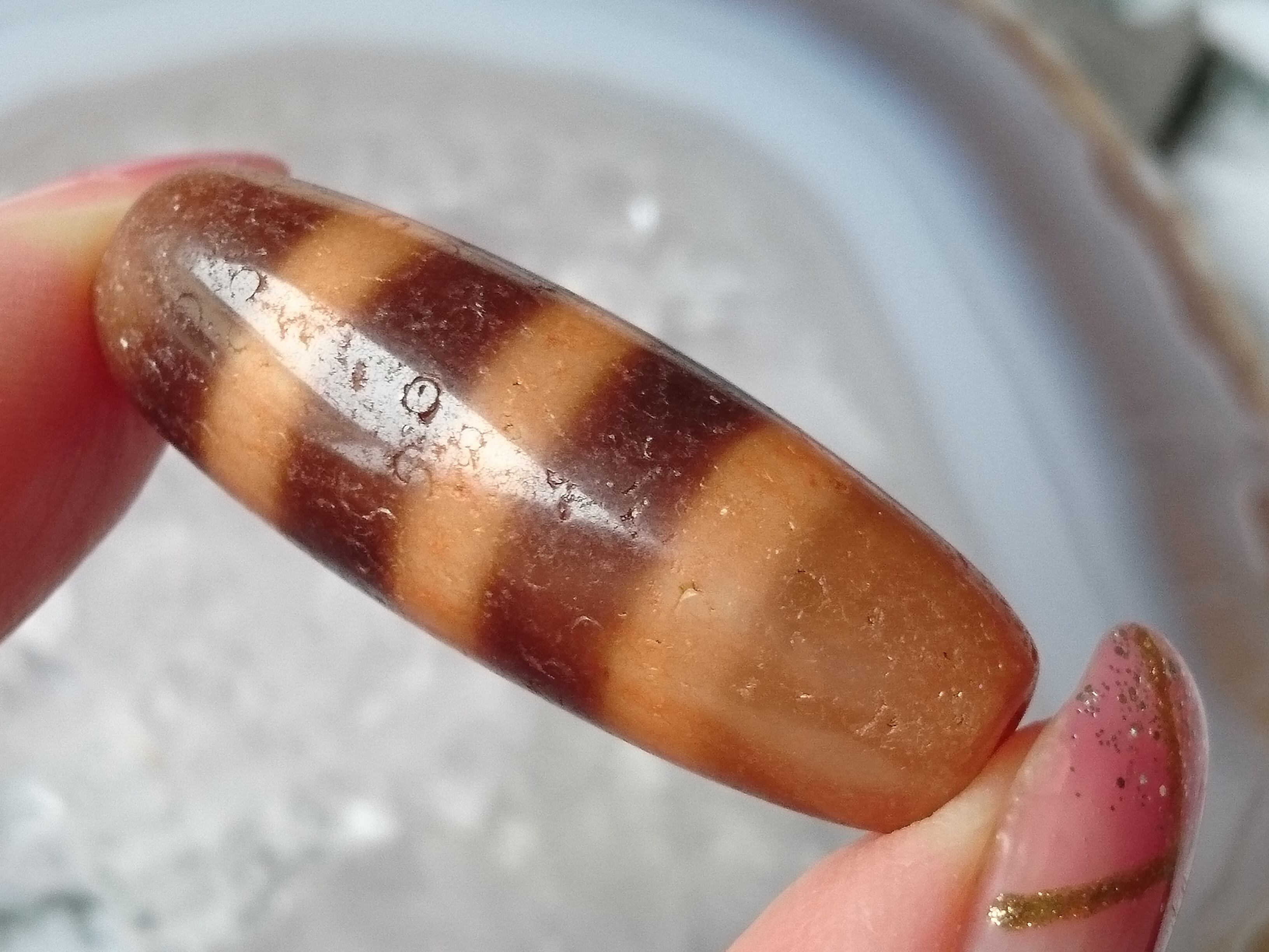 透明感のある瑪瑙の三線天珠です✨