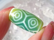 透明感のある緑、黄緑のグラデーションが美しい緑玉髄龍眼天珠です✨