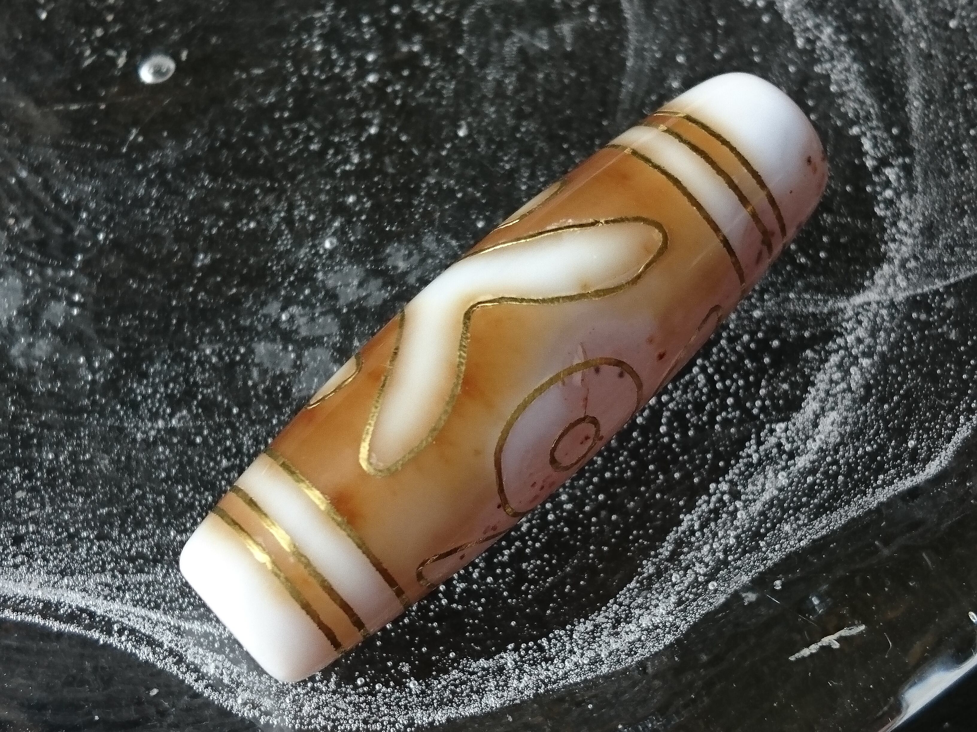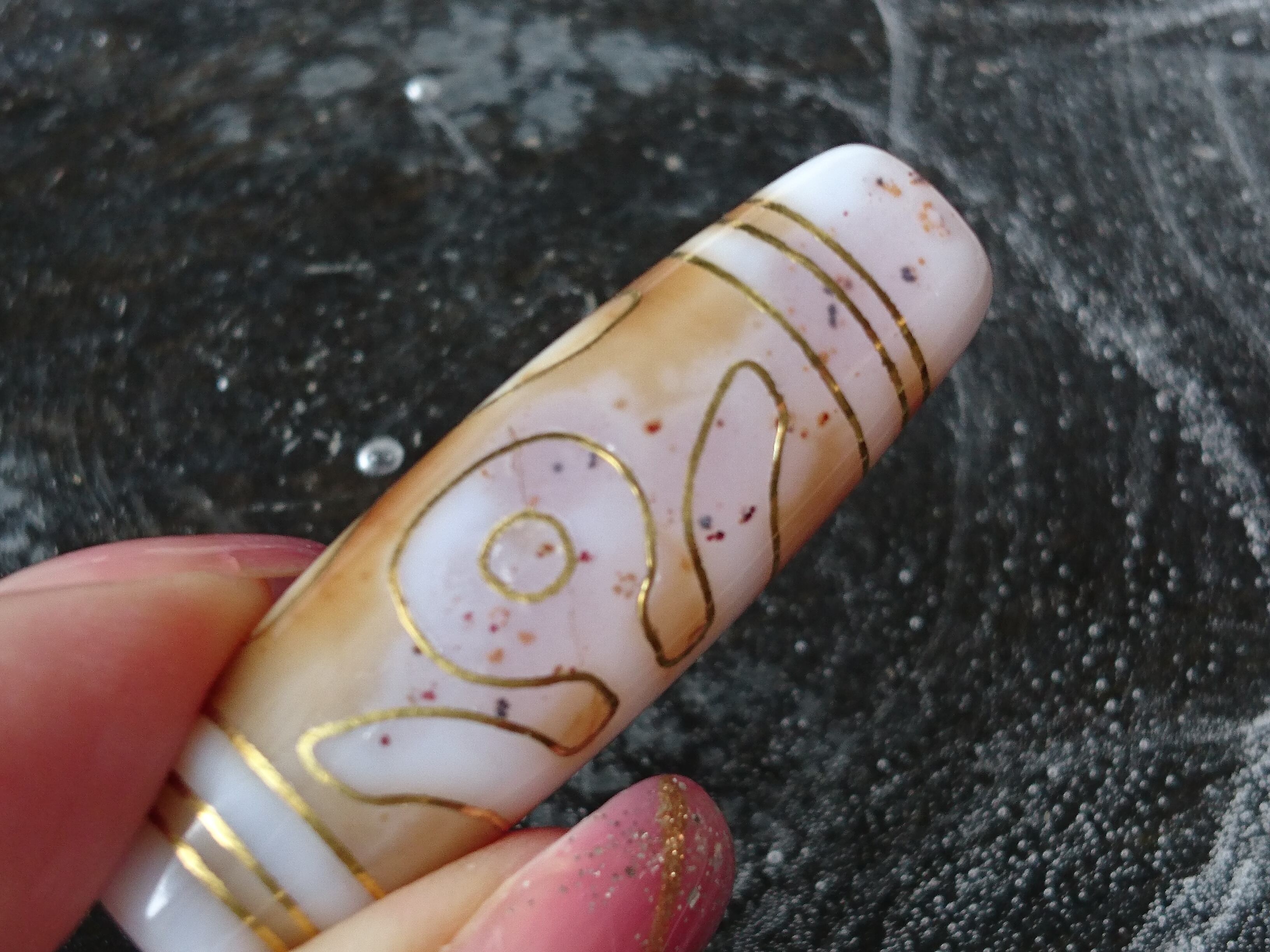 ぽちぽち朱砂入り✨赤朱砂、黒朱砂両方入ってます✨部分的に透明感のある金線天珠です✨
